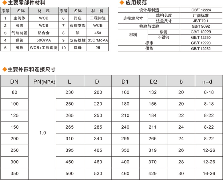 該系列閥門替代圓頂閥、翻轉閥、吊中閥、雙閘板閥門用作倉泵的進料門,也可用于礦山、化工等各類有磨損的干灰、水渣等介質的管道上作啟閉之用。使用公稱壓力1.0MPa,適應溫度≤200℃,氣源壓力0.6—0.8MPa。